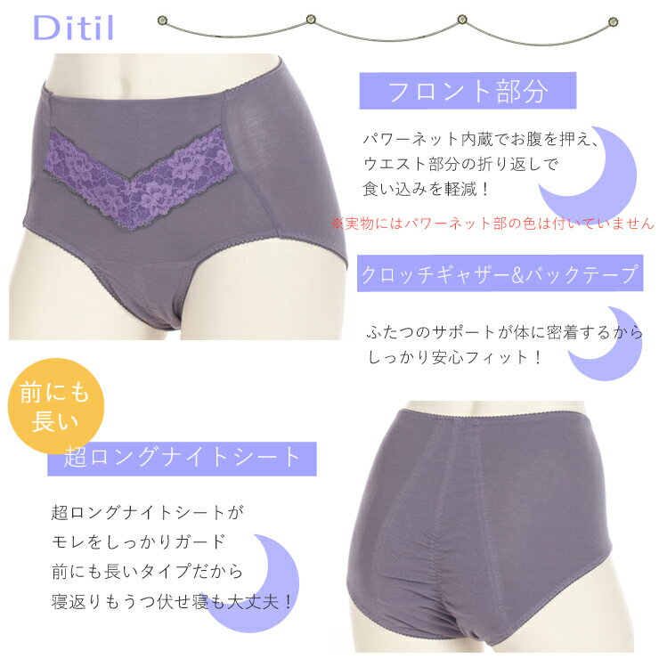 【特に多い日の夜におすすめ】 ・肌に優しい綿95%素材使用 ・お腹押えのパワーネット内蔵 ・前も長めのナイトシートで夜も安心 ・ウエスト折り返し仕様で肌当たりよく食い込みを軽減 ・バックギャザー、クロッチギャザーで身体にフィット ・かさかさ音のしにくい裏マチシート 注意 【ネコポス便ご利用は3枚まで可能です】 ※ネコポス便は、日時指定・代引きがご利用出来ません。