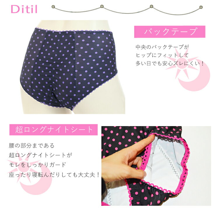 【多い日/長時間におすすめ】 ・縦にも横にも伸縮性のあるポリエステル素材 ・ドット柄昇華プリント ・羽付ナプキン対応 ・かさかさ音のしにくい裏マチシート ・バックテープ付 注意 【ネコポス便ご利用は3枚まで可能です】 ※ネコポス便は、日時指定・代引きがご利用出来ません。