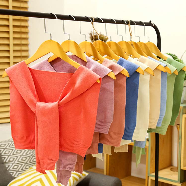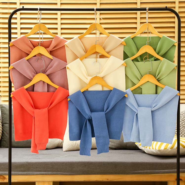 送料無料 全20色 肩かけニット ニット 付け襟 ニットストール 肩掛け フェイクカーディガンショルダー マフラー セーラー襟 ボーダー 無地 冷え対策 レイヤード
