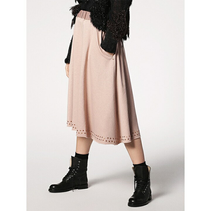 【商品状態】 新品・未使用 【平置き実寸サイズ】※単位cm Wはウエスト、Hはヒップ 【XS】W58 スカート総丈69 【S】W63 スカート総丈71 【M】W68 スカート総丈72 【素材】コットン(綿)100% 付属部品:レザー(羊革) 【生産国】INDIA 【ファスナー位置】無し 【仕様】 ・両サイドにポケット有り ・裾カットオフ(切りっぱなし) ・裏地無し ・透け感無し ・ストレッチ有り ・ウエストゴム仕様 ※こちらの商品はストック品に付き、たたみシワがある場合がございます。