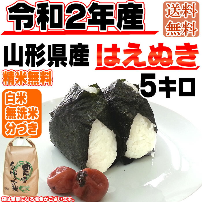 【送料無料】令和2年産 山形県産 はえぬき 白米5kg【沖縄別途1000円加算】